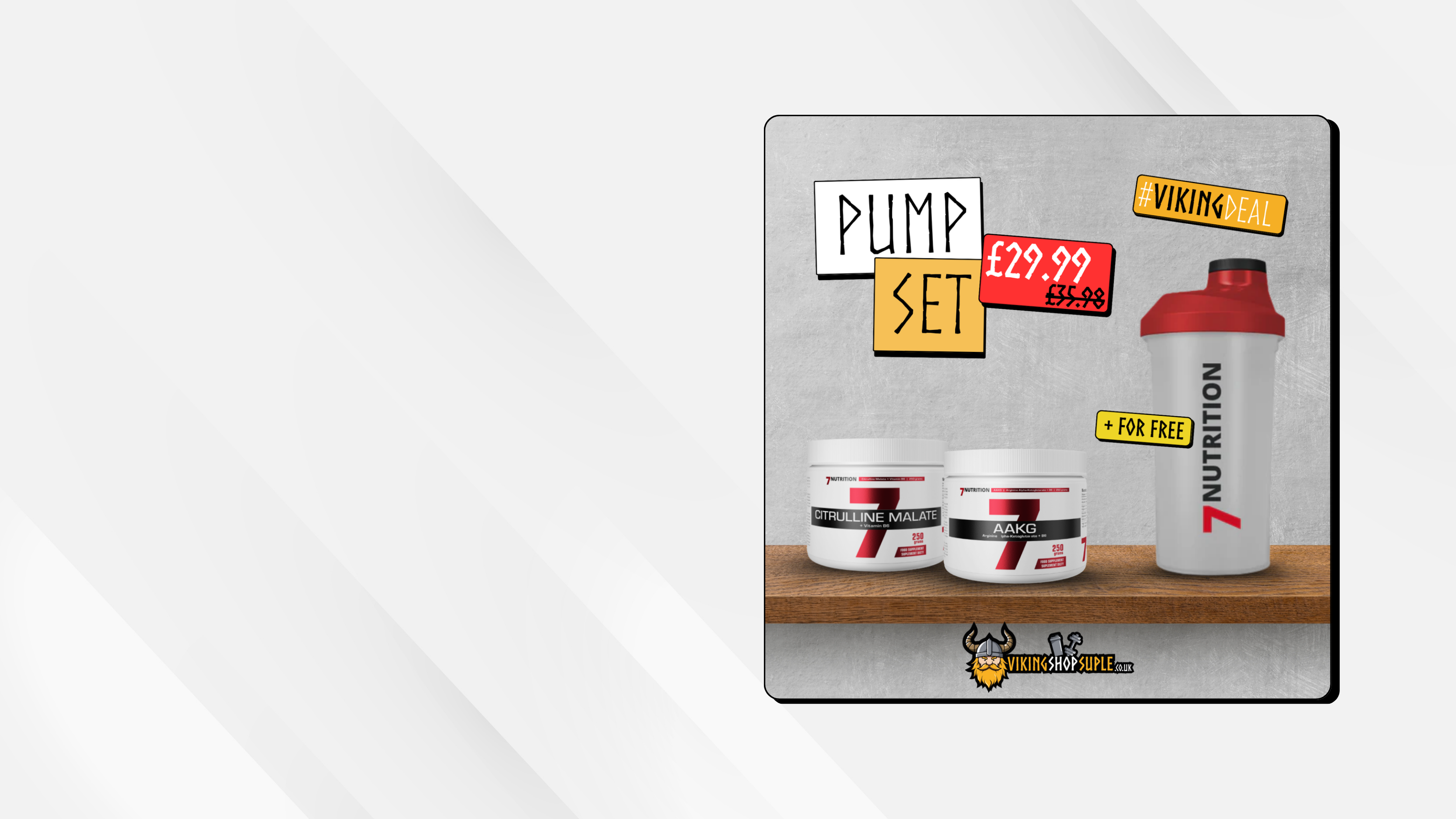 Don’t just train — dominate. The Pump Set combines Citrulline Malate + AAKG + a FREE shaker to deliver insane muscle pumps, increased blood flow, and next-level workout intensity. Pre-workout fuel crafted for real Vikings.