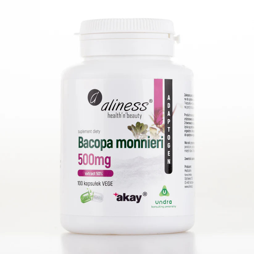 Small-leaved bacopa is classified as an adaptogenic agent, i.e. it increases the body's immunity and allows for better coping with stress factors of the external environment. In addition, bacopa has a positive effect on mental health, having a calming and anxiolytic effect, as well as improving memory and cognitive functions, and has an antioxidant effect. The health-promoting effect of small-leaved bacopa has long been noticed in India, where the plant has been used successfully in traditional Ayurvedic medicine for 5000 years.