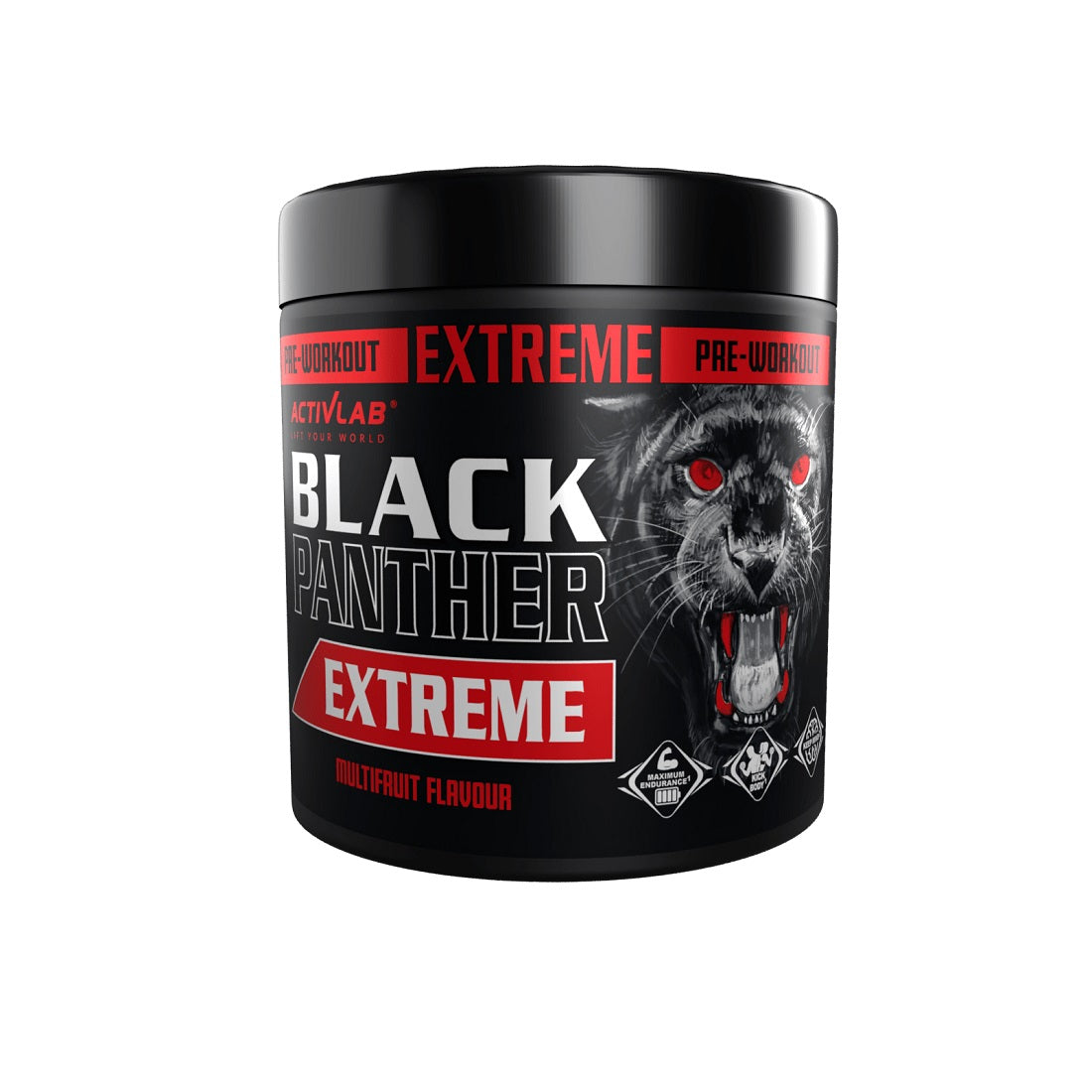 Czarna Pantera EKSTREMALNA to wieloskładnikowy preparat szczególnie polecany do stosowania przed treningiem siłowo-wytrzymałościowym, sprzyjający budowie tzw. suchej masy mięśniowej. Preparat zawiera aminokwasy, witaminy i minerały. Spożywanie kreatyny zwiększa wydolność fizyczną podczas krótkotrwałych, powtarzalnych, intensywnych ćwiczeń. Beta-alanina opóźniając wystąpienie zmęczenia pozwala wydłużyć czas treningu. Kofeina pomaga zwiększyć wytrzymałość i wydolność fizyczną podczas ćwiczeń. Kwas pantotenowy pomaga utrzymać sprawność umysłową na prawidłowym poziomie.