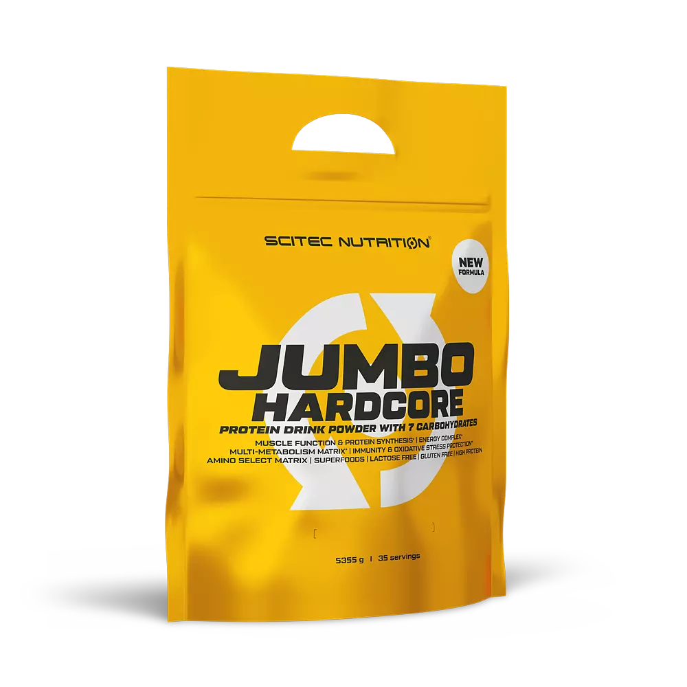 Jumbo Hardcore helps those who want to gain weight to achieve this caloric surplus in a way that the ingredients which can be found in the product meet these requirements. The ratio of protein to carbohydrate in the product is almost identical: 60g of carbohydrate, 63g of protein with 14g of fat per serving, which obviously increases the amount of macronutrients consumed in your daily diet.