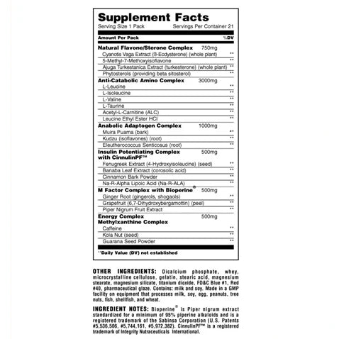 M-Stak combines the most powerful of these anabolic compounds in significant dosages, making the long storied anabolic potential of the product all the greater. Primary among these flavones are Beta-Ecdysterone (Cyanotis Vaga) and 5-Methyl-y-Methoxyisoflavone. These ingredients have the ability to shuttle nutrients specifically towards lean mass accumulation, a process known as 'nutrient partitioning.