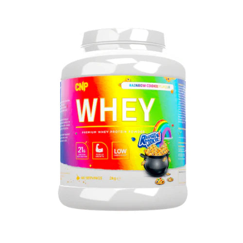 New CNP whey comes in 8 delicious flavours, including the new Rainbow Cookie and Sticky Toffee Pudding options, which provide 21g of protein per 30g serving!