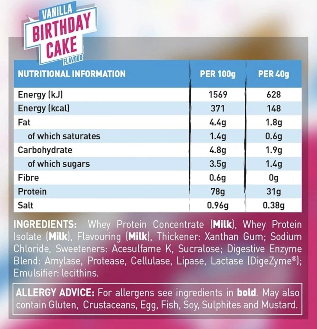 Get ready to supercharge your workouts with Birthday Cake Protein Powder 480g! Each serving crams in a whopping 30g of protein.